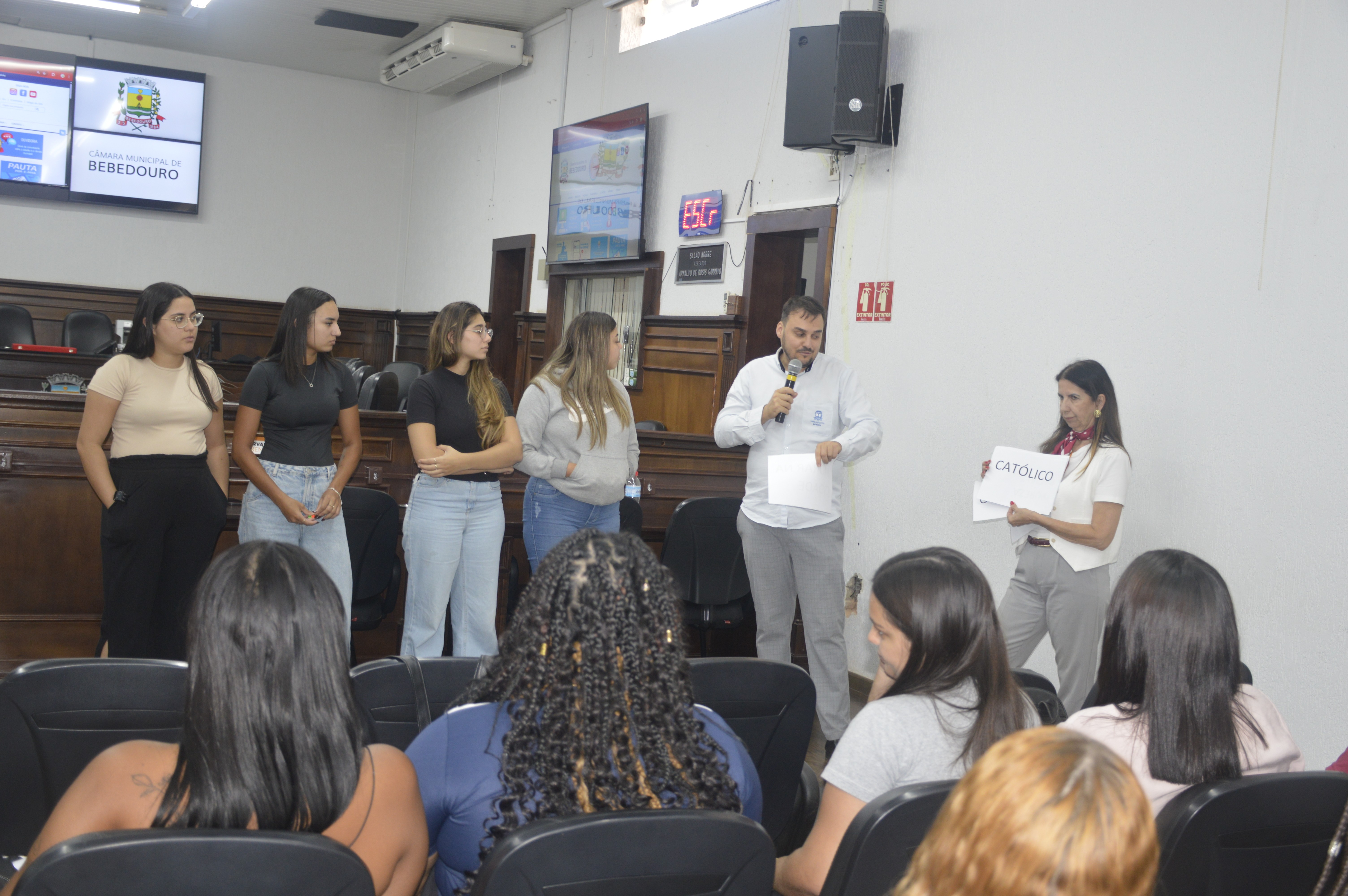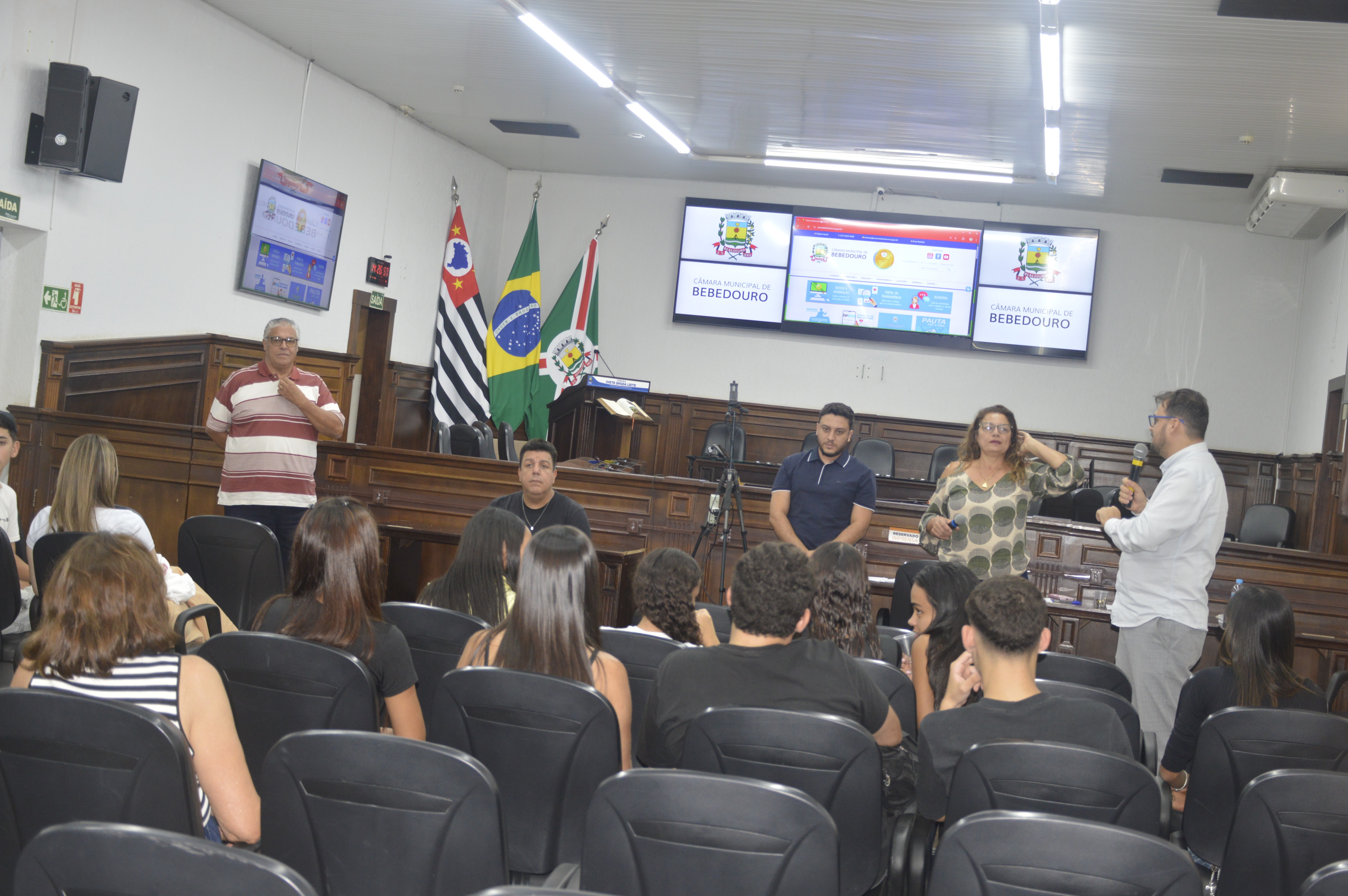 Durante um bate-papo com os vereadores Prof. Dr. Gandini (PT), Paulo Bola (MDB), Dra. Ivanete Xavier (PSD) e Otávio Manzi (PL), os alunos puderam esclarecer dúvidas sobre o funcionamento da Câmara e o processo de elaboração das leis. Também apresentaram críticas e sugestões relacionadas ao município, com destaque para a necessidade de ampliação de políticas públicas voltadas às mulheres, aos estudantes e ao enfrentamento da criminalidade.