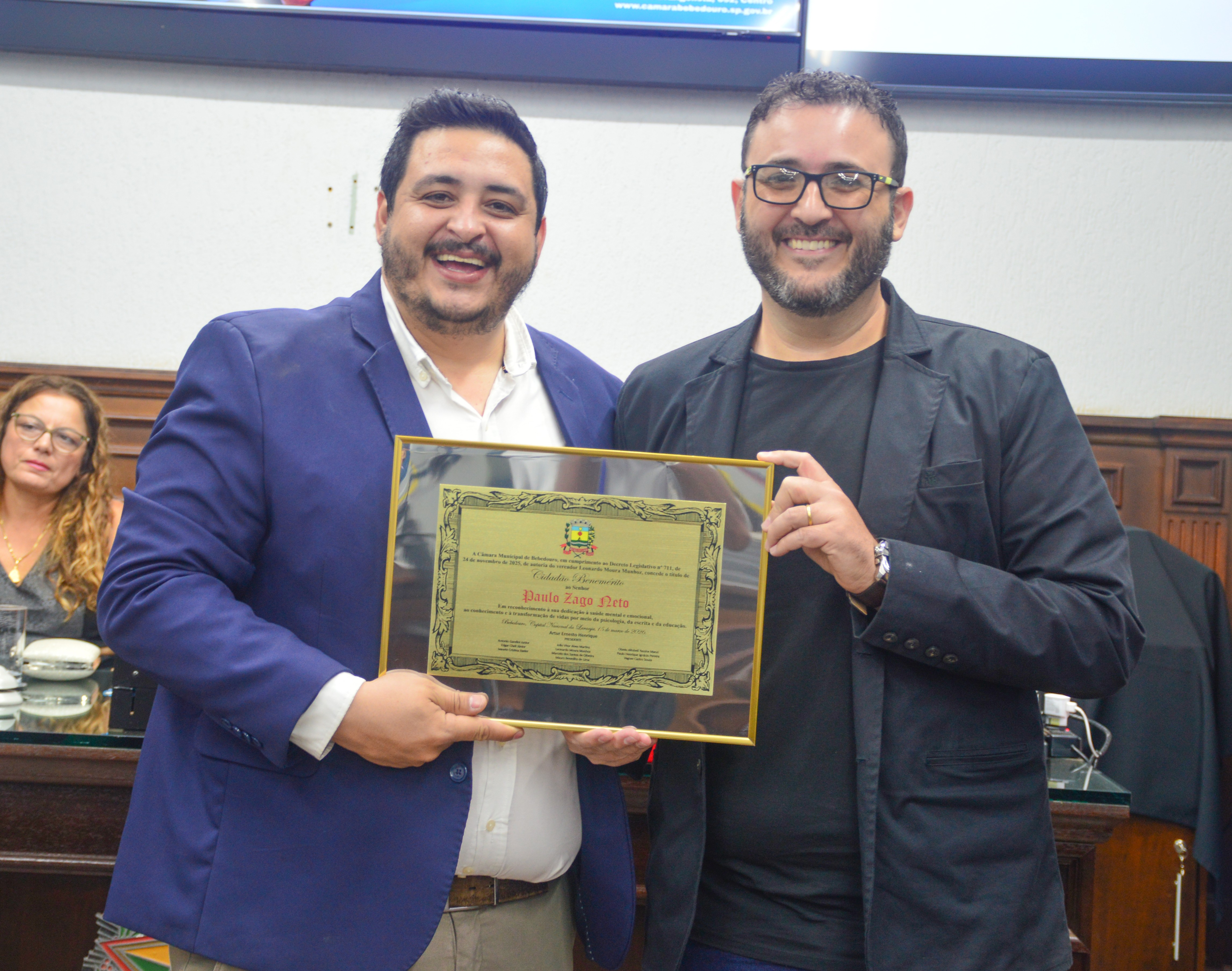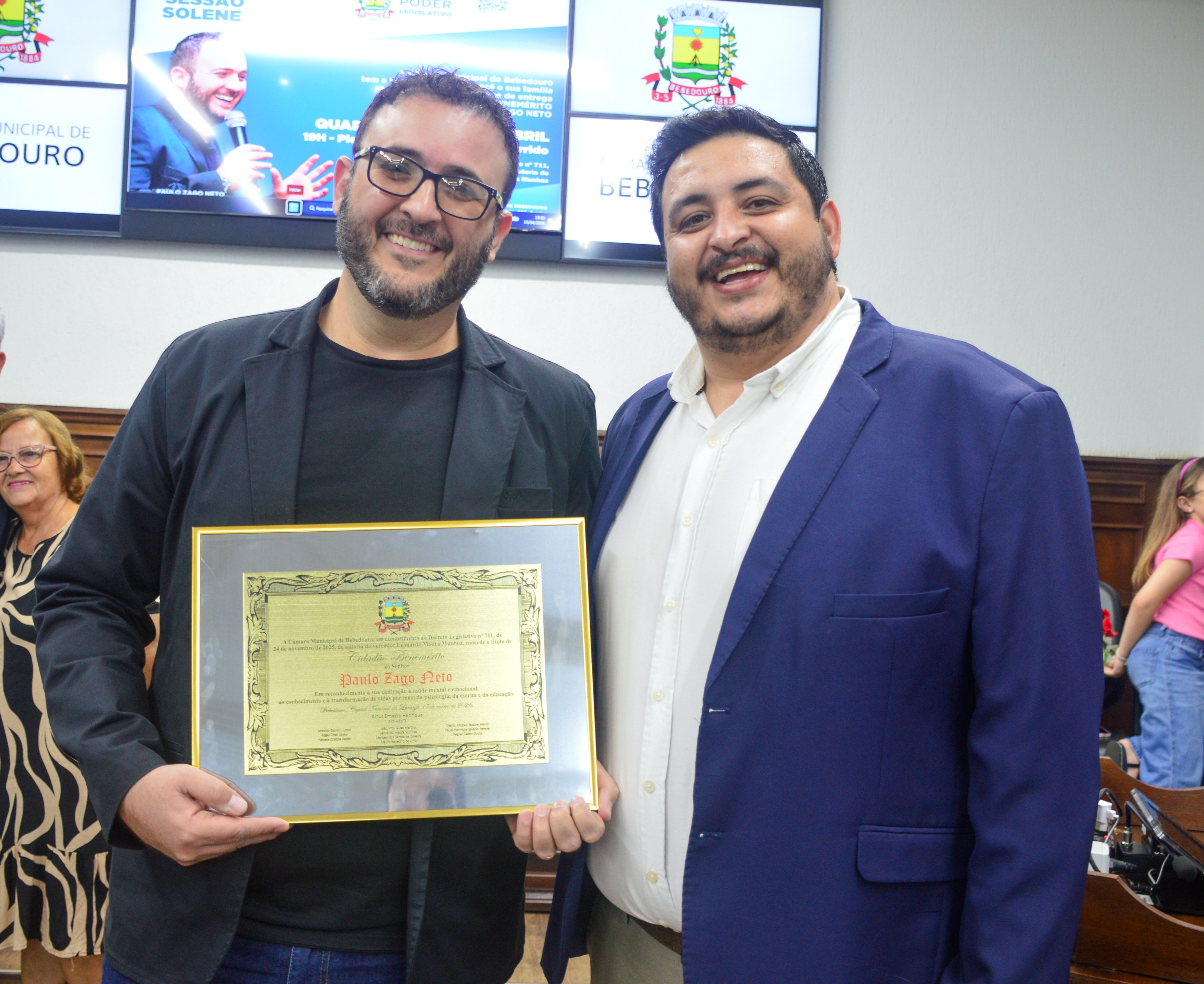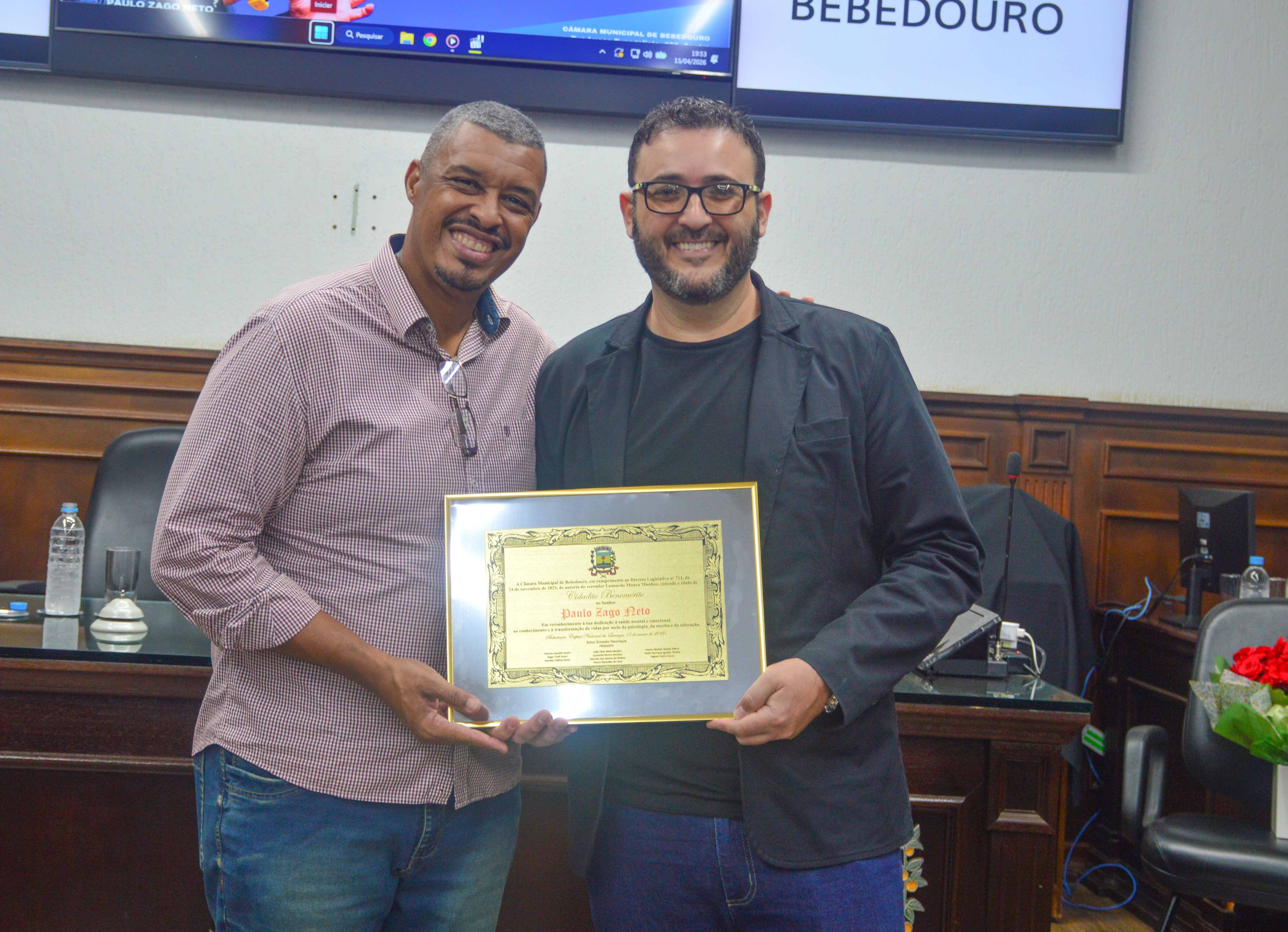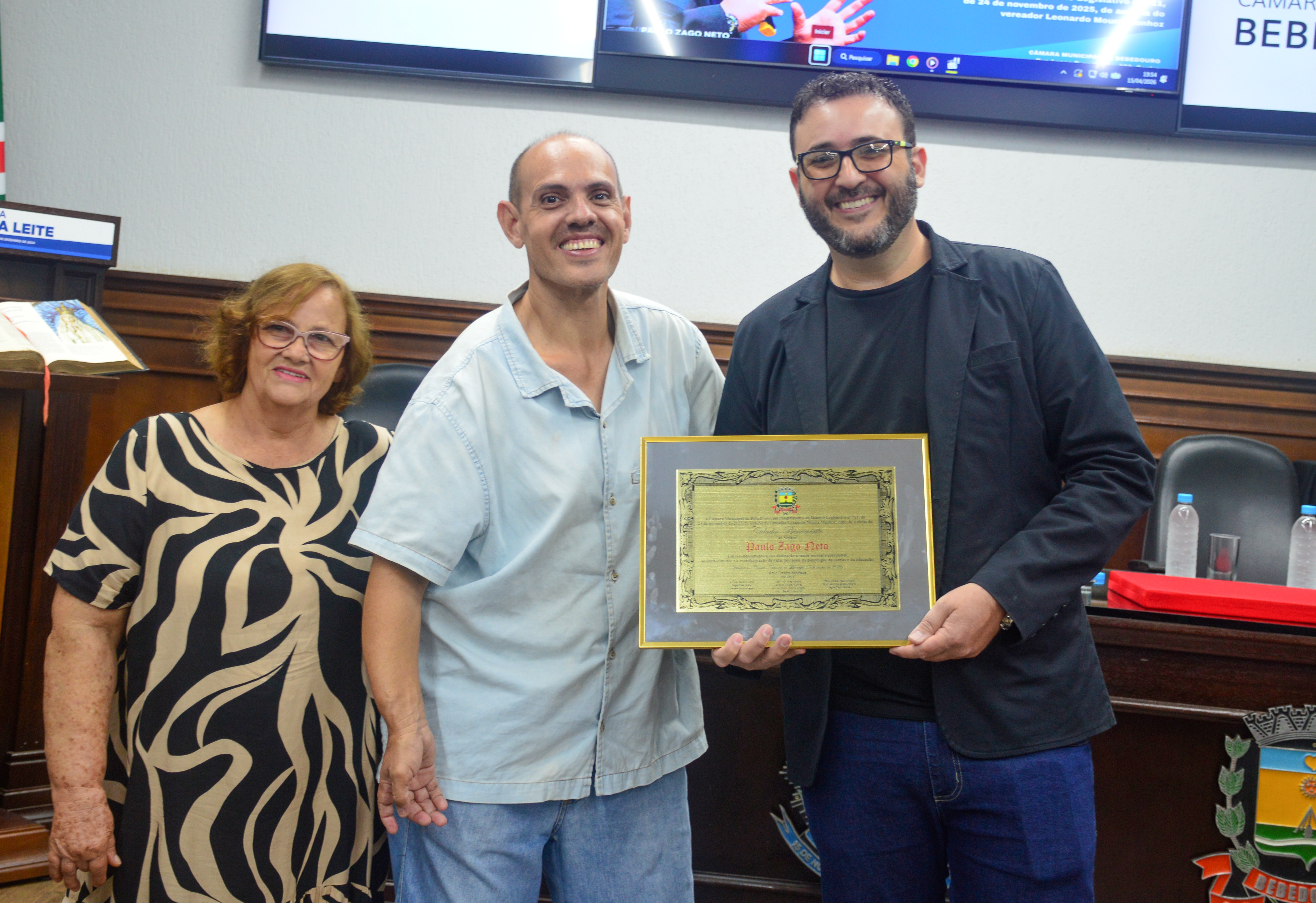 A homenagem foi proposta pelo vereador Léo Munhoz (Podemos). A atuação social de Neto Zago, como é mais conhecido, estende-se para além do consultório. Ele, que é natural de Bebedouro, idealizou e coordena projetos de impacto comunitário, como o DepreNão, focado na prevenção e tratamento da depressão, entre outros.