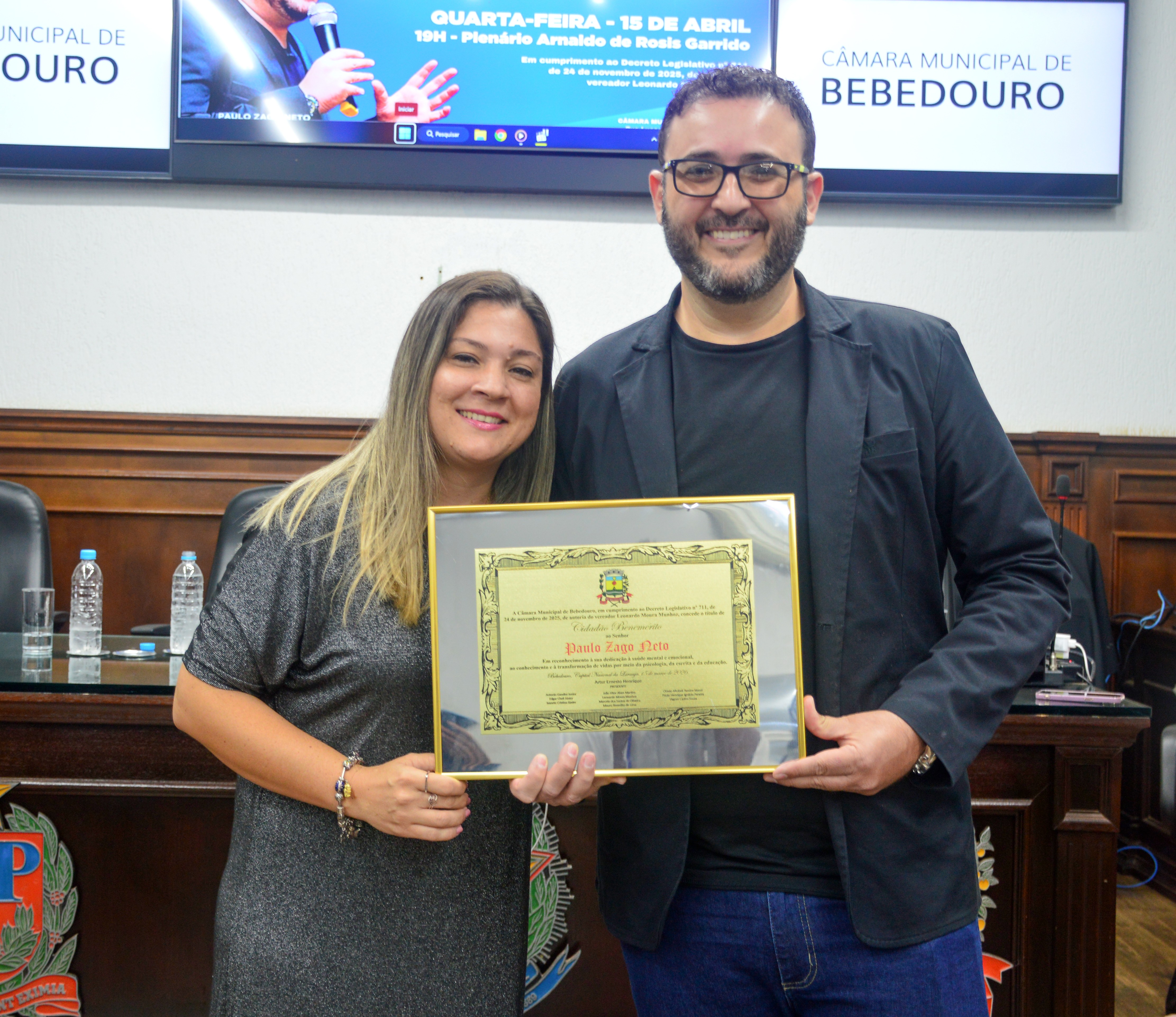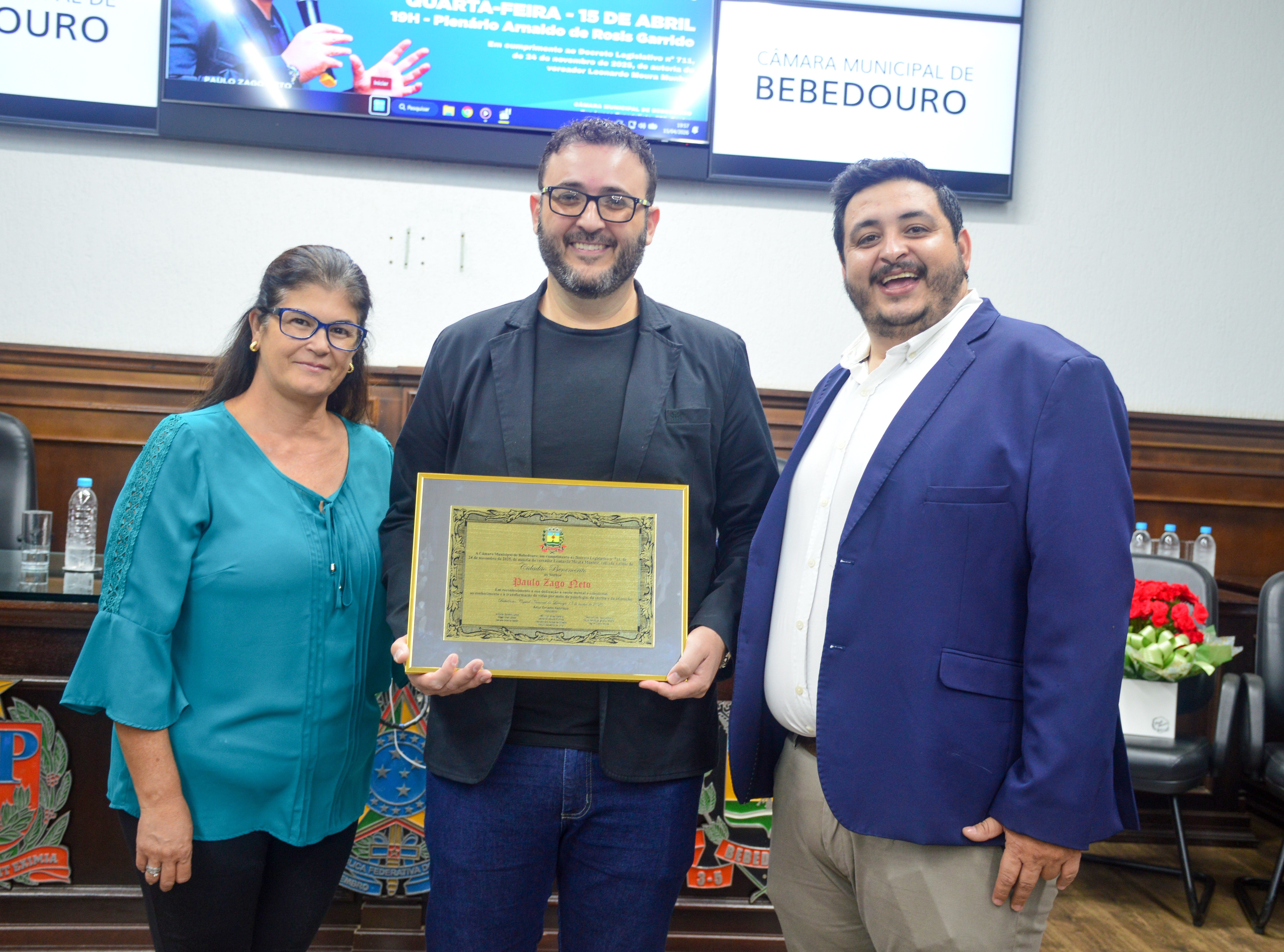 O psicólogo, escritor e palestrante Paulo Zago Neto recebeu do Poder Legislativo de Bebedouro - nesta quarta-feira (15) - o título de cidadão benemérito em gratidão e reconhecimento ao trabalho desenvolvido por ele, que tem resgatado vidas e divulgado positivamente a cidade de Bebedouro por todo o mundo.