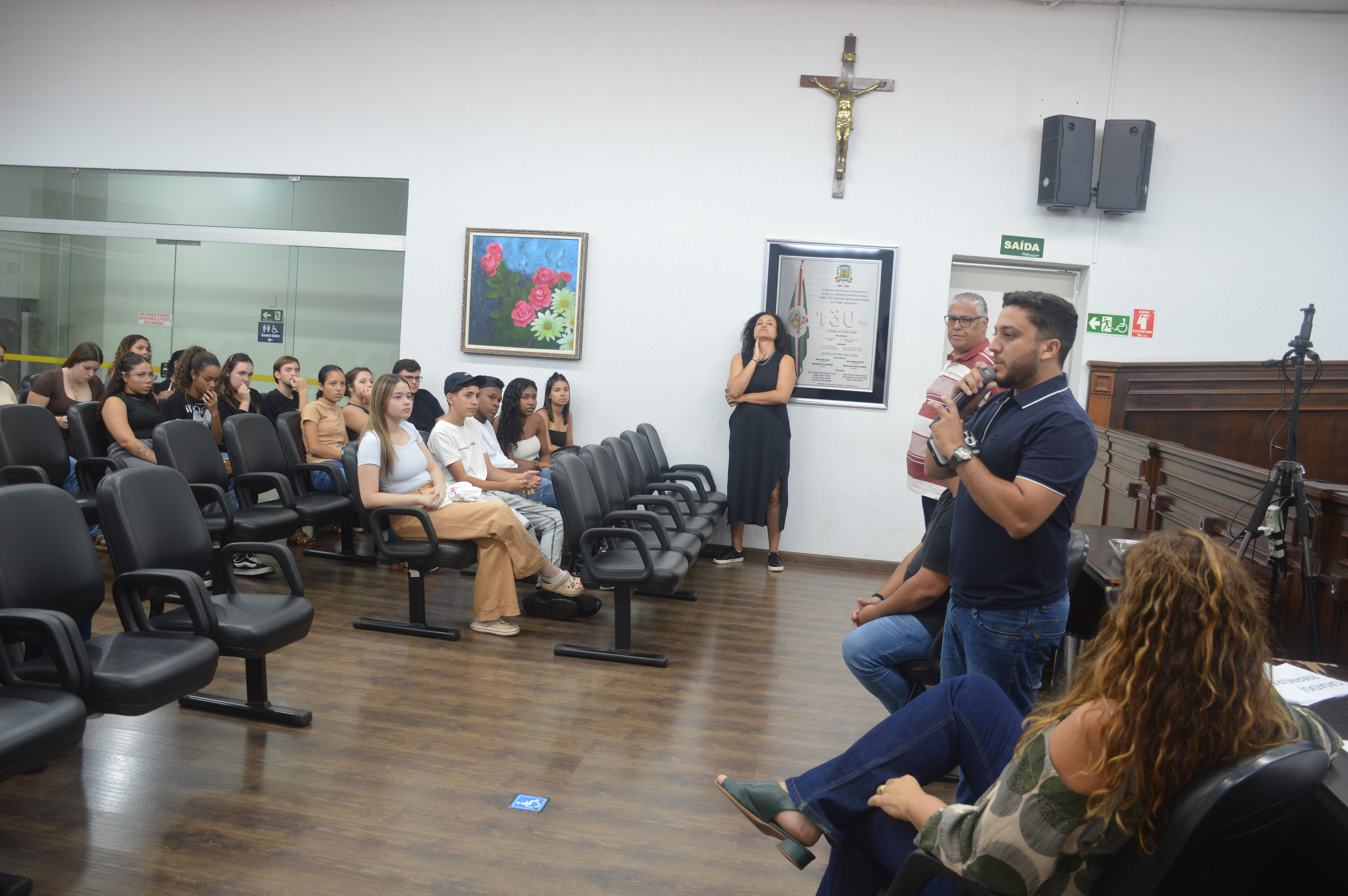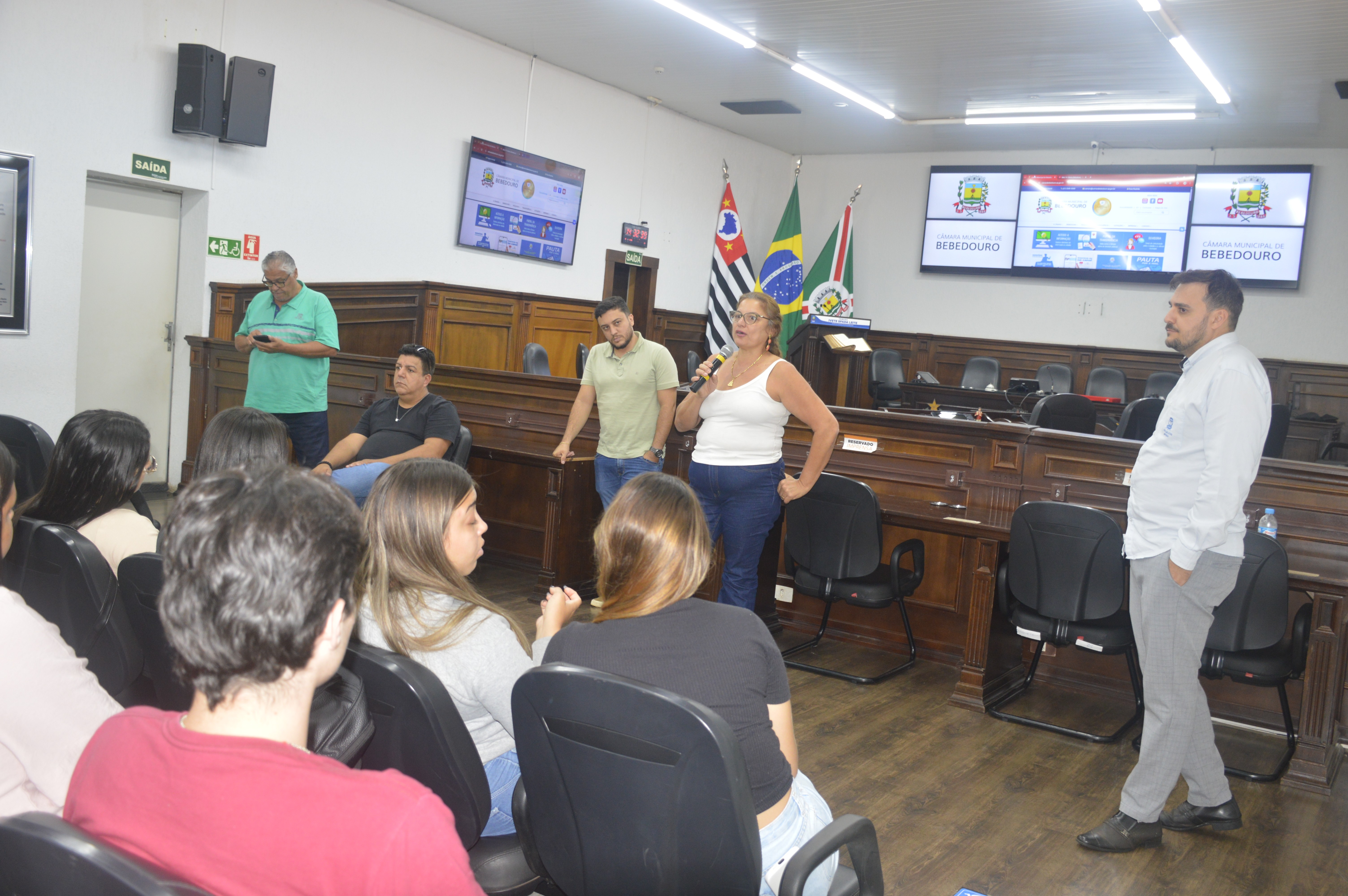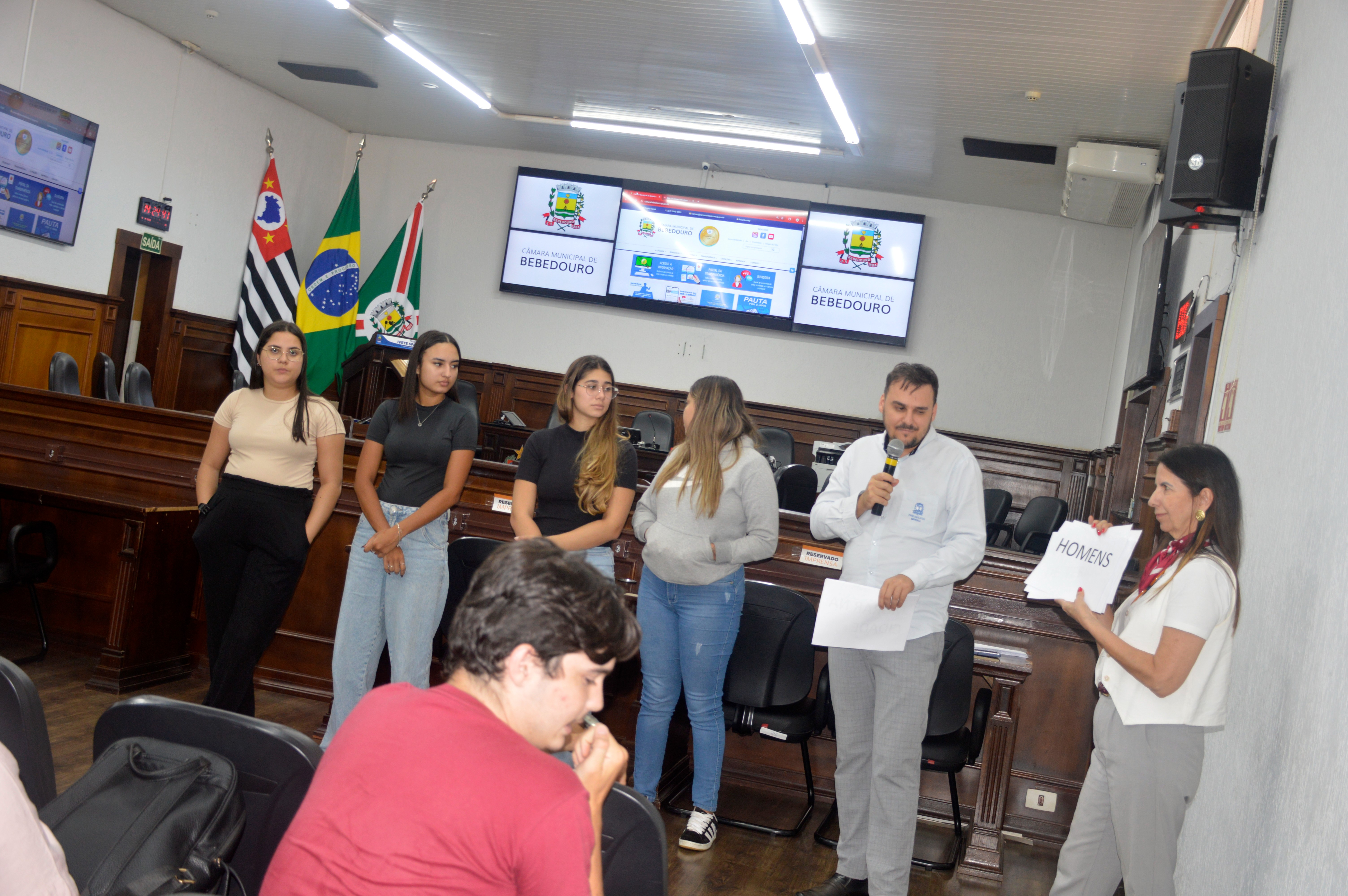 Durante um bate-papo com os vereadores Prof. Dr. Gandini (PT), Paulo Bola (MDB), Dra. Ivanete Xavier (PSD) e Otávio Manzi (PL), os alunos puderam esclarecer dúvidas sobre o funcionamento da Câmara e o processo de elaboração das leis. Também apresentaram críticas e sugestões relacionadas ao município, com destaque para a necessidade de ampliação de políticas públicas voltadas às mulheres, aos estudantes e ao enfrentamento da criminalidade.