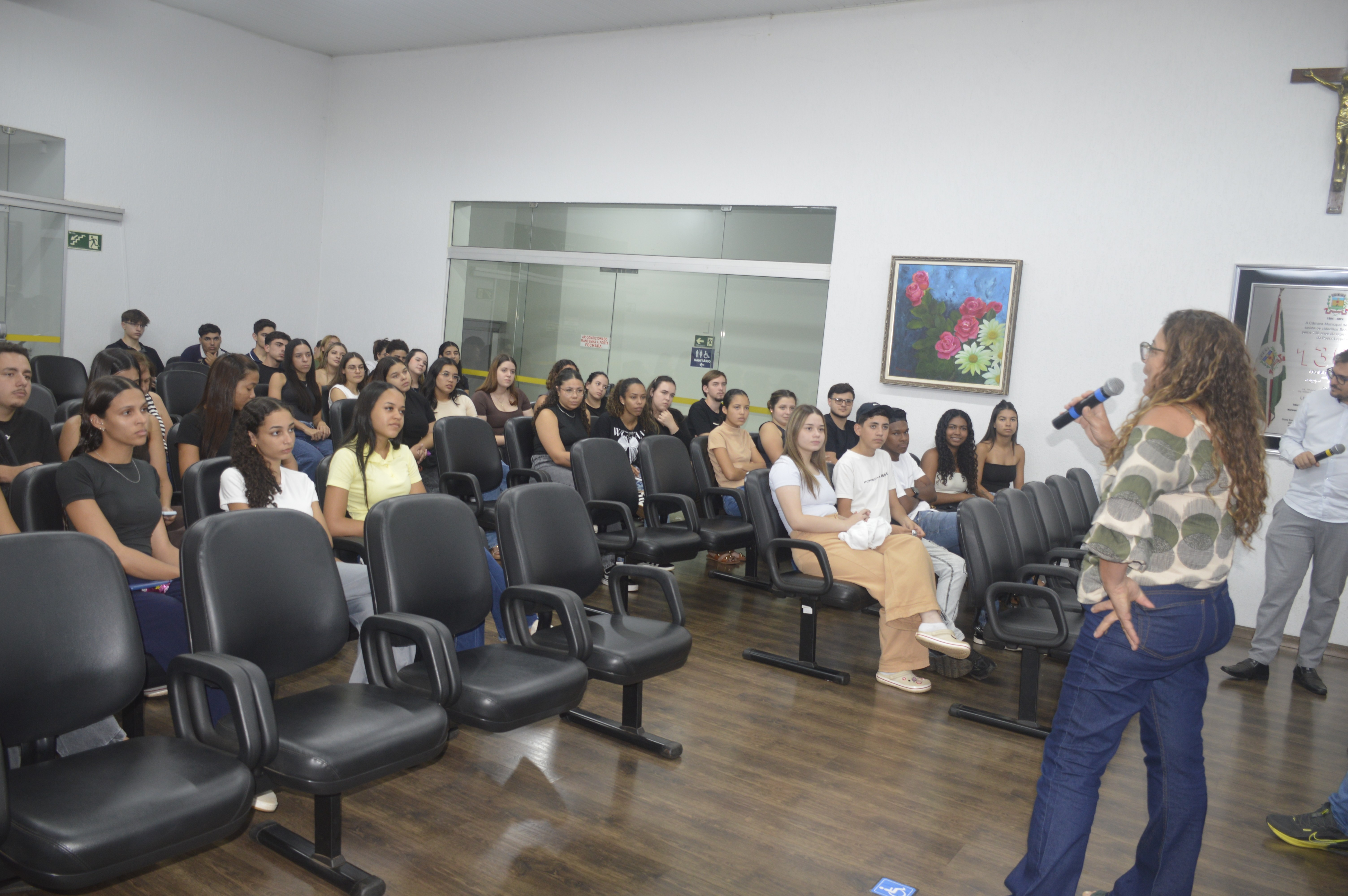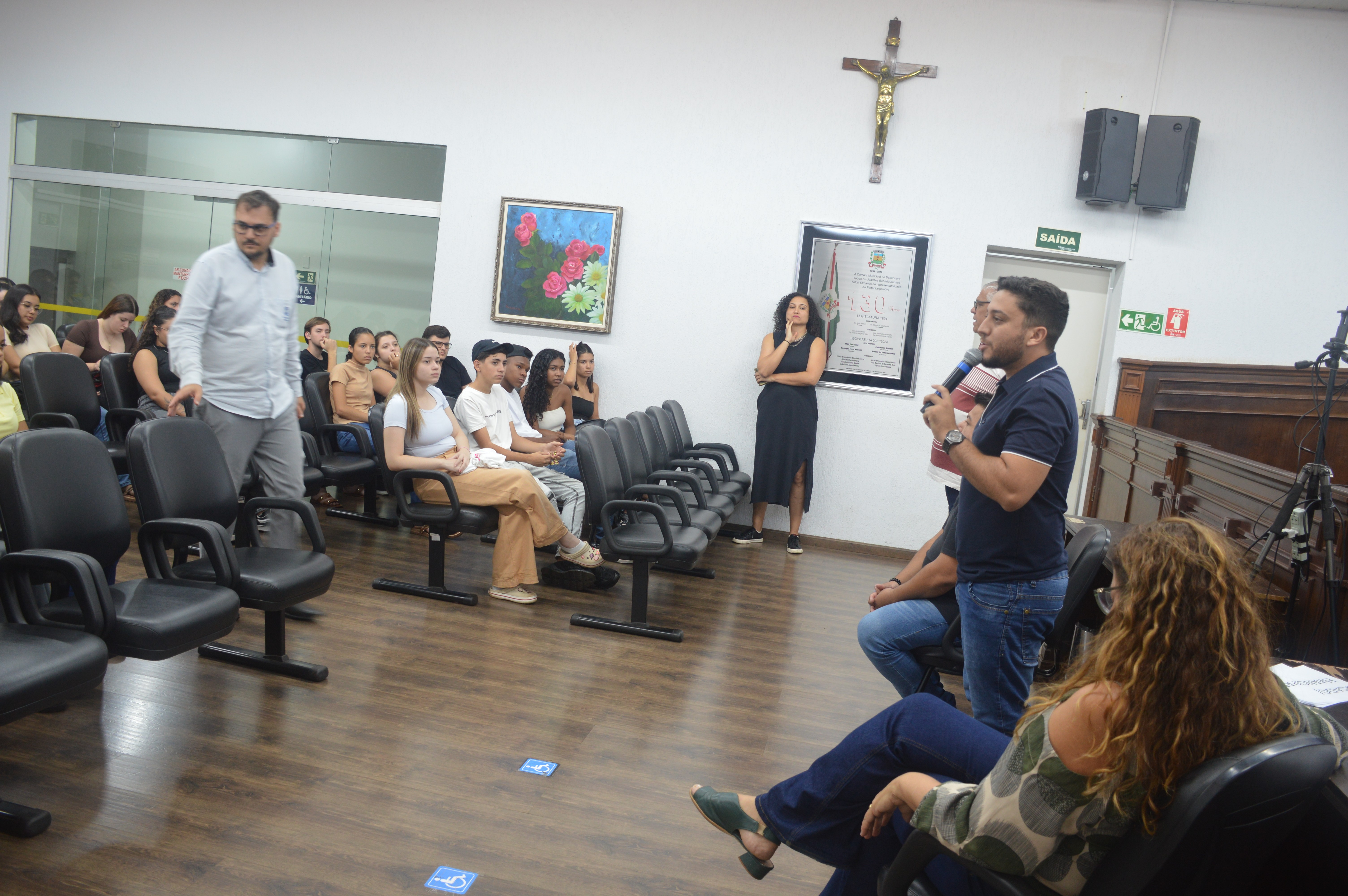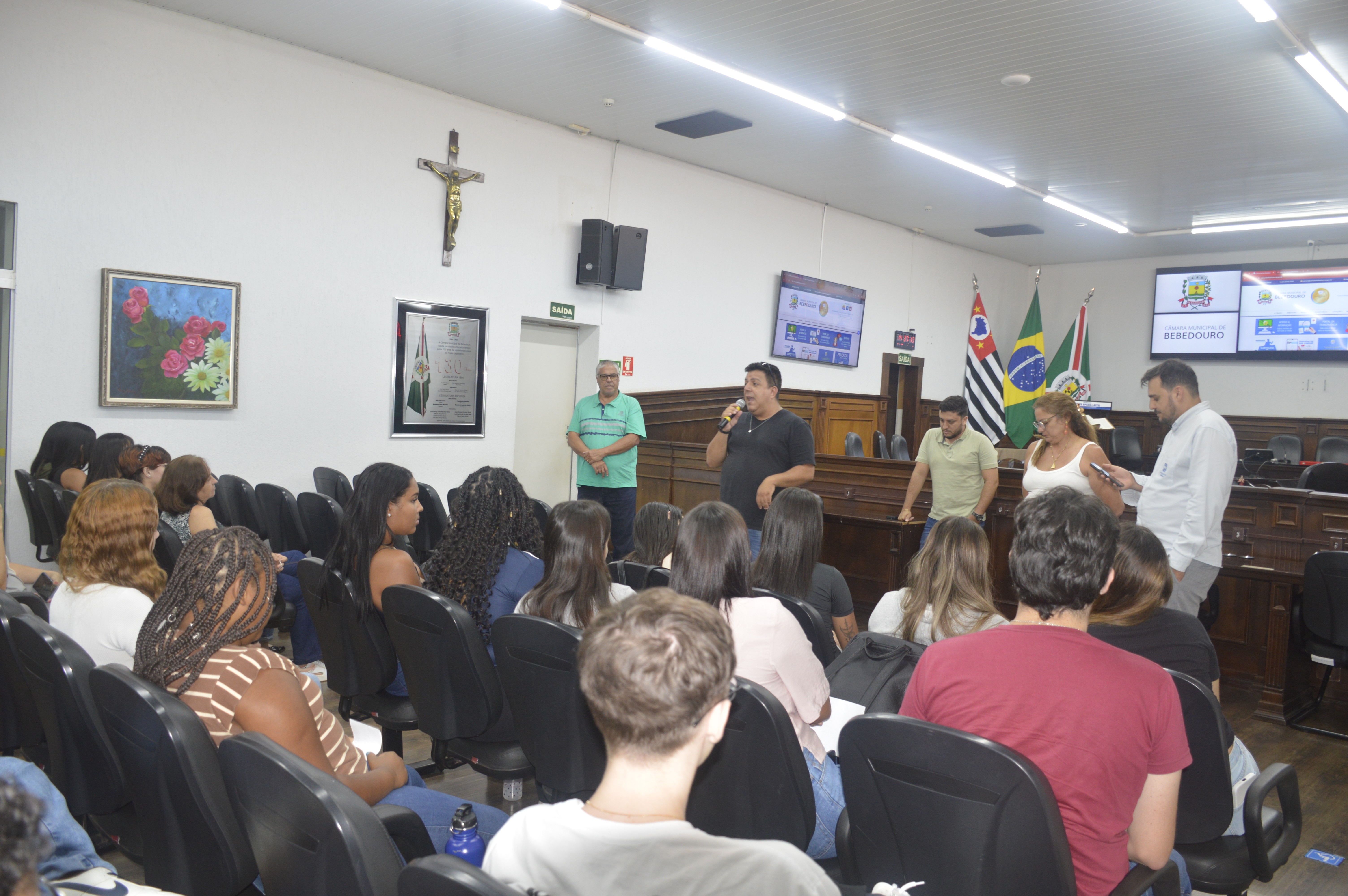 Durante um bate-papo com os vereadores Prof. Dr. Gandini (PT), Paulo Bola (MDB), Dra. Ivanete Xavier (PSD) e Otávio Manzi (PL), os alunos puderam esclarecer dúvidas sobre o funcionamento da Câmara e o processo de elaboração das leis. Também apresentaram críticas e sugestões relacionadas ao município, com destaque para a necessidade de ampliação de políticas públicas voltadas às mulheres, aos estudantes e ao enfrentamento da criminalidade.