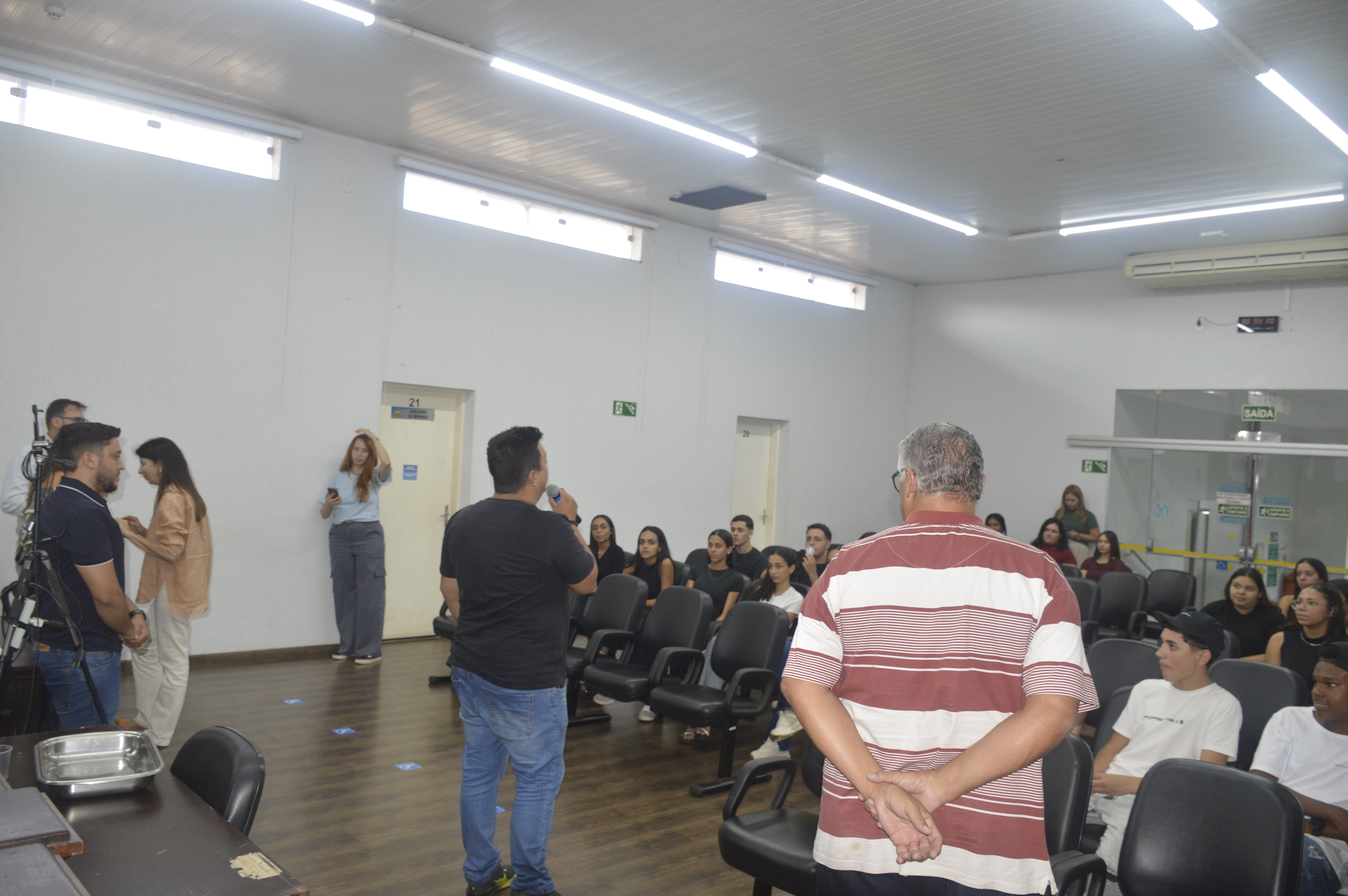 Ao longo de quarta e quinta-feira, quatro turmas passaram pela sede do Legislativo — duas em cada dia — acompanhadas pelo professor e jornalista Miguel Quessada. A visita teve como objetivo aproximar os alunos da realidade política, permitindo que compartilhassem vivências, apresentassem demandas e entendessem o papel do Legislativo na busca por soluções para os desafios enfrentados pela juventude.