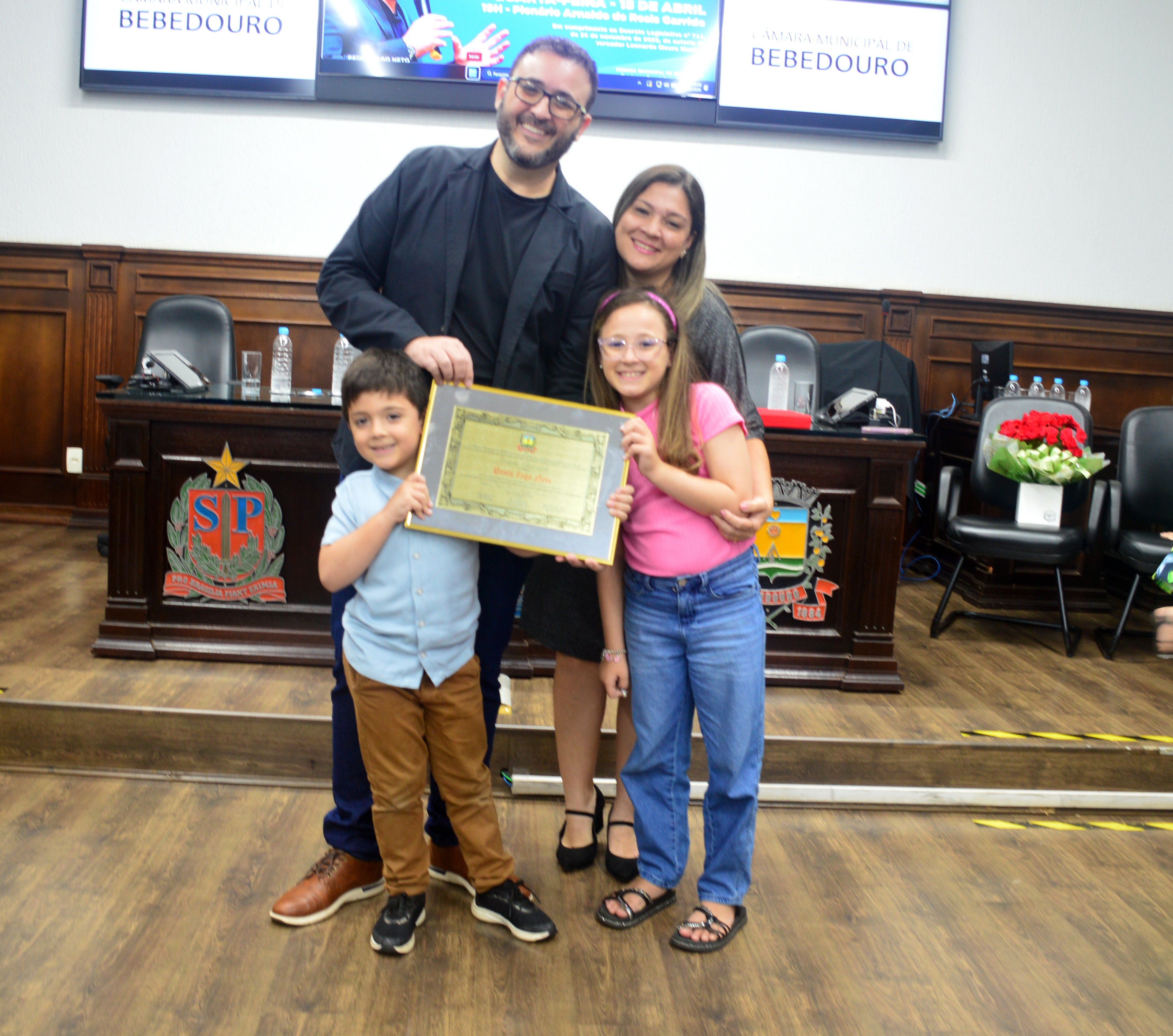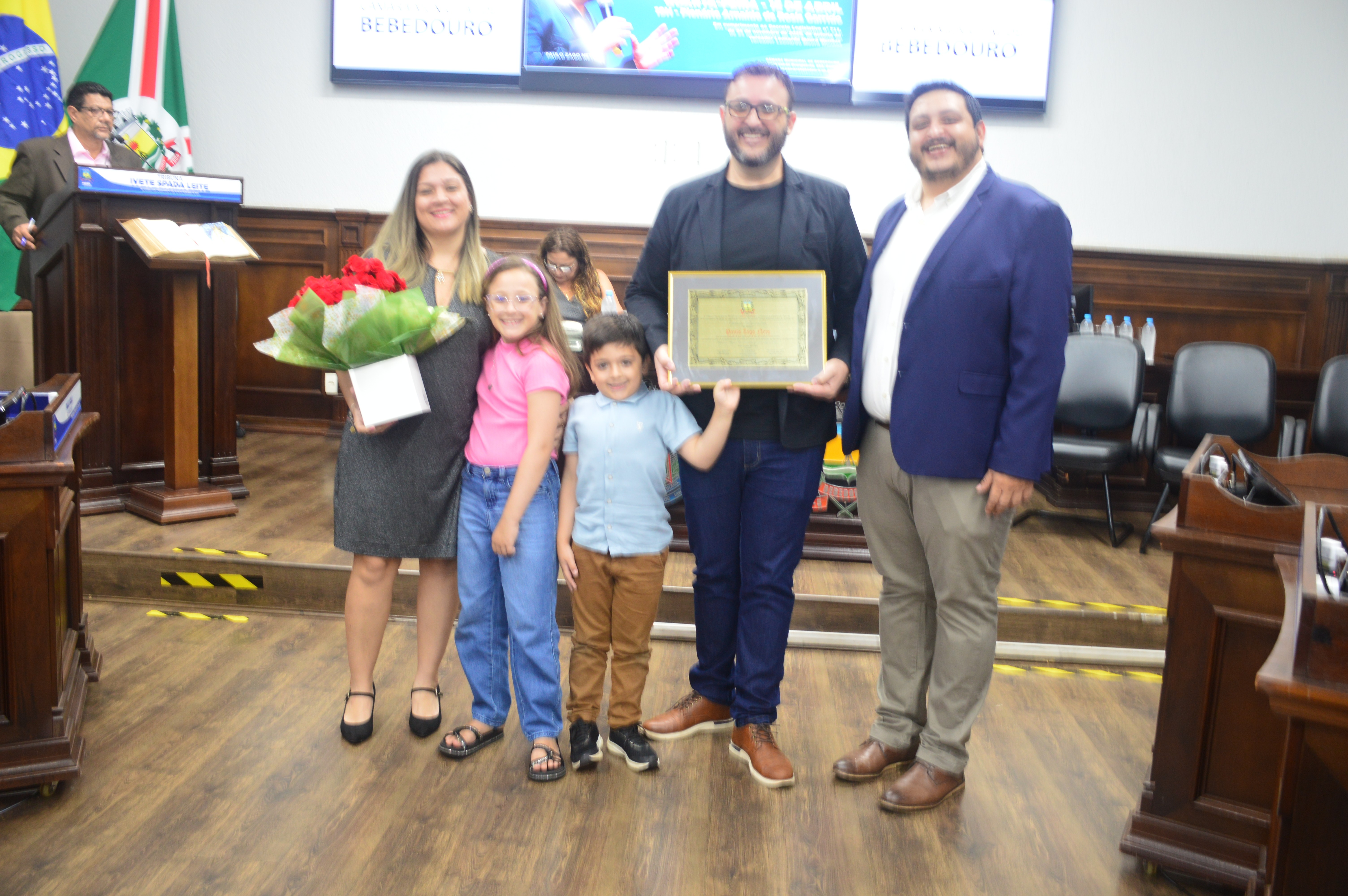 Além do vereador Léo Munhoz, a sessão solene de premiação contou com as presenças da vereadora Dra. Ivanete Xavier (PSD), do vereador Maurinho da Farmácia (Republicanos), e de familiares e amigos do homenageado.