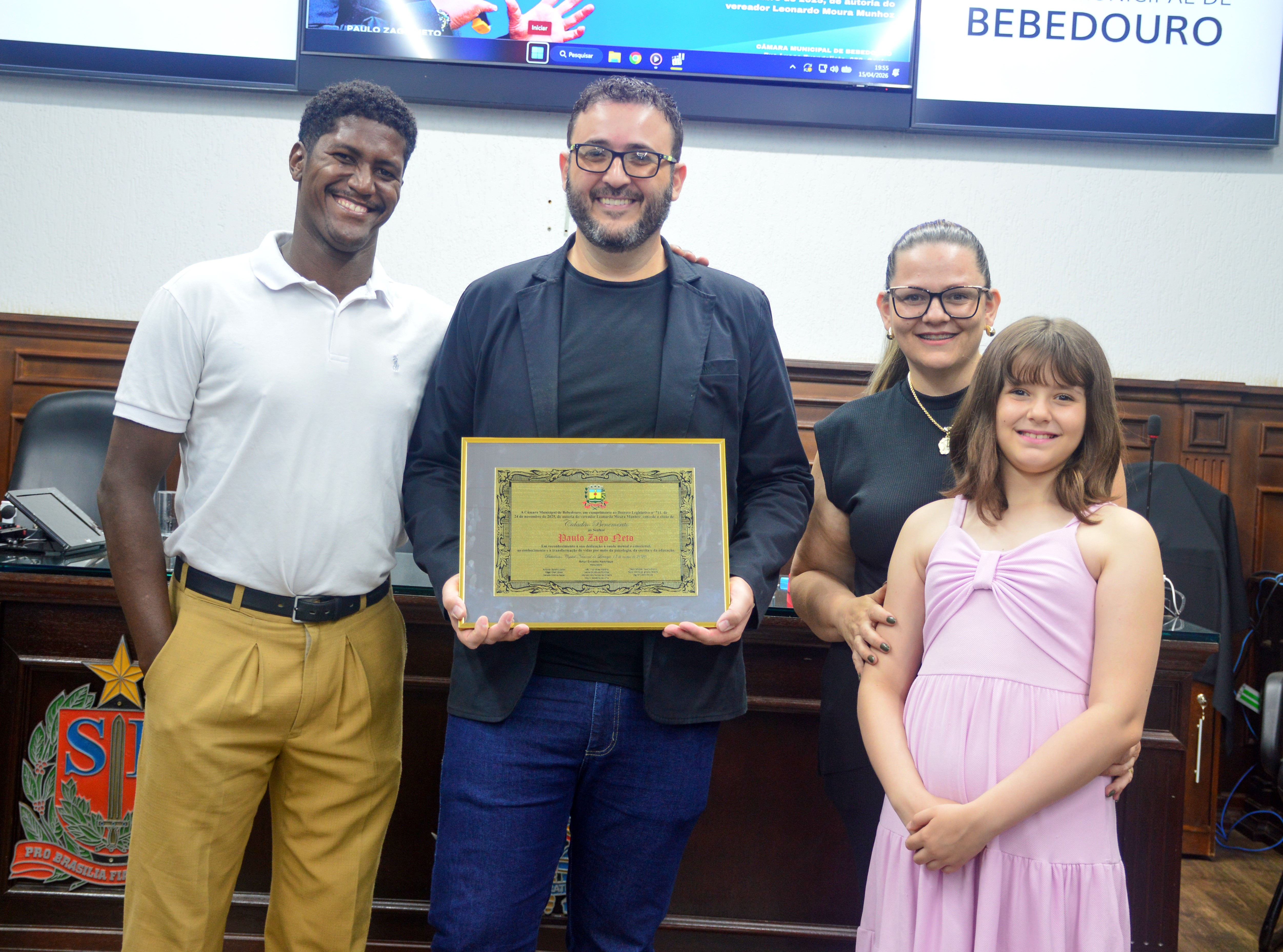 O psicólogo, escritor e palestrante Paulo Zago Neto recebeu do Poder Legislativo de Bebedouro - nesta quarta-feira (15) - o título de cidadão benemérito em gratidão e reconhecimento ao trabalho desenvolvido por ele, que tem resgatado vidas e divulgado positivamente a cidade de Bebedouro por todo o mundo.